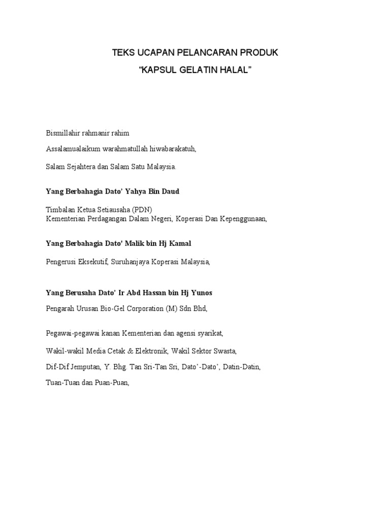 Contoh Ucapan Majlis Pelancaran Produk Ditulis Harold Livingston Jumat, 25 Maret 2022 Tulis Komentar Edit Ucapan Majlis Pelancaran Pelan Tindakan Psptn Fasa 2 Teks Ucapan Pelancaran Produk Pdf Teks Ucapan Pelancaran Produk Pdf Teks Ucapan Pelancaran Produk Pdf Bagikan Artikel ini